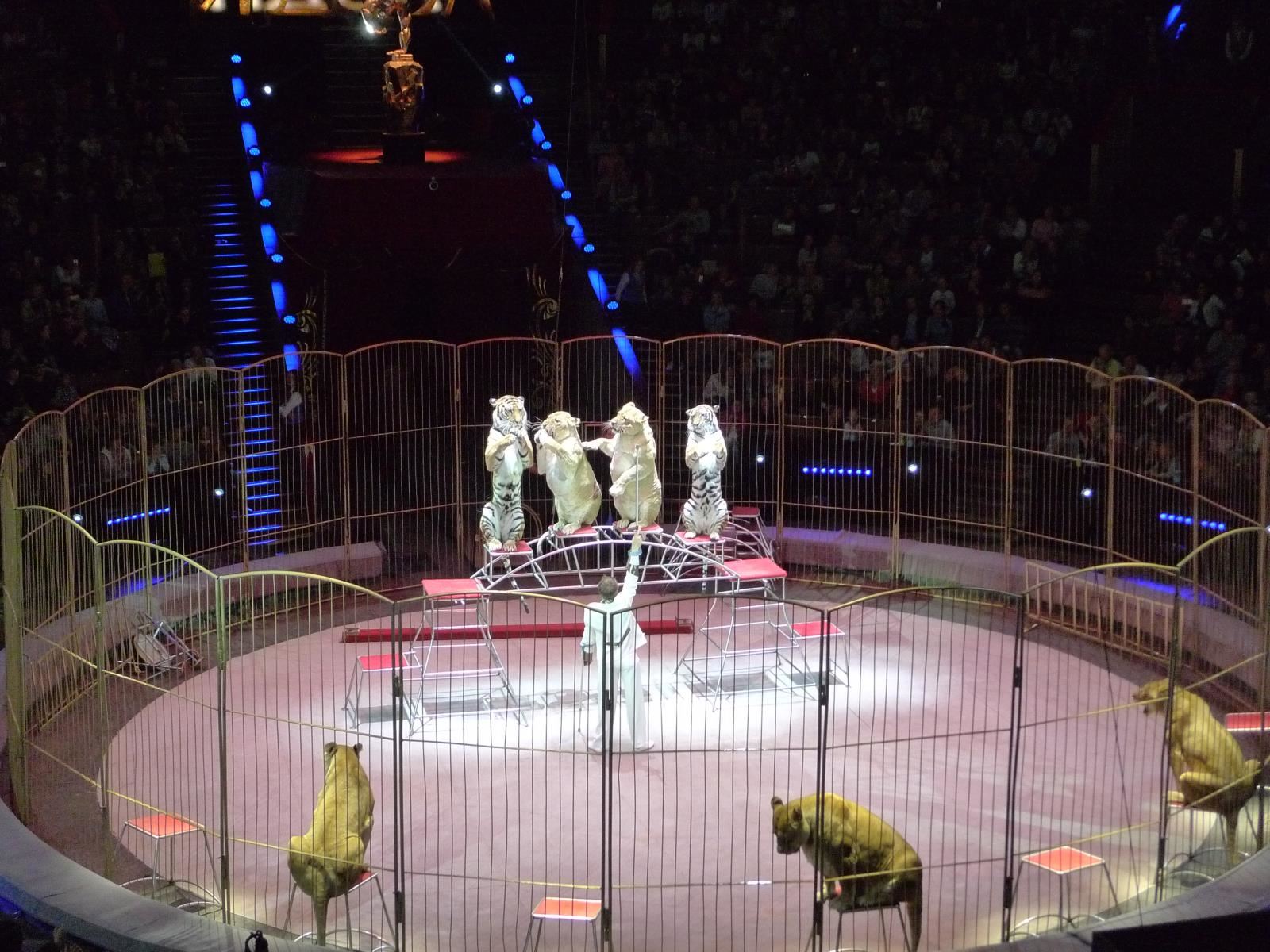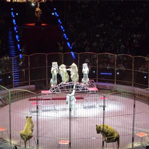 活動(dòng)獸欄置于圓形馬戲(猛獸)表演區(qū)外緣,當(dāng)馬戲(猛獸)表演時(shí)利用卷揚(yáng)系統(tǒng)升起。