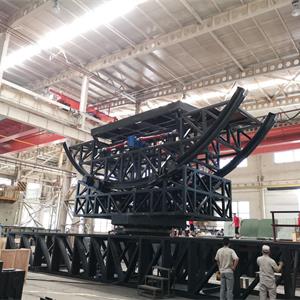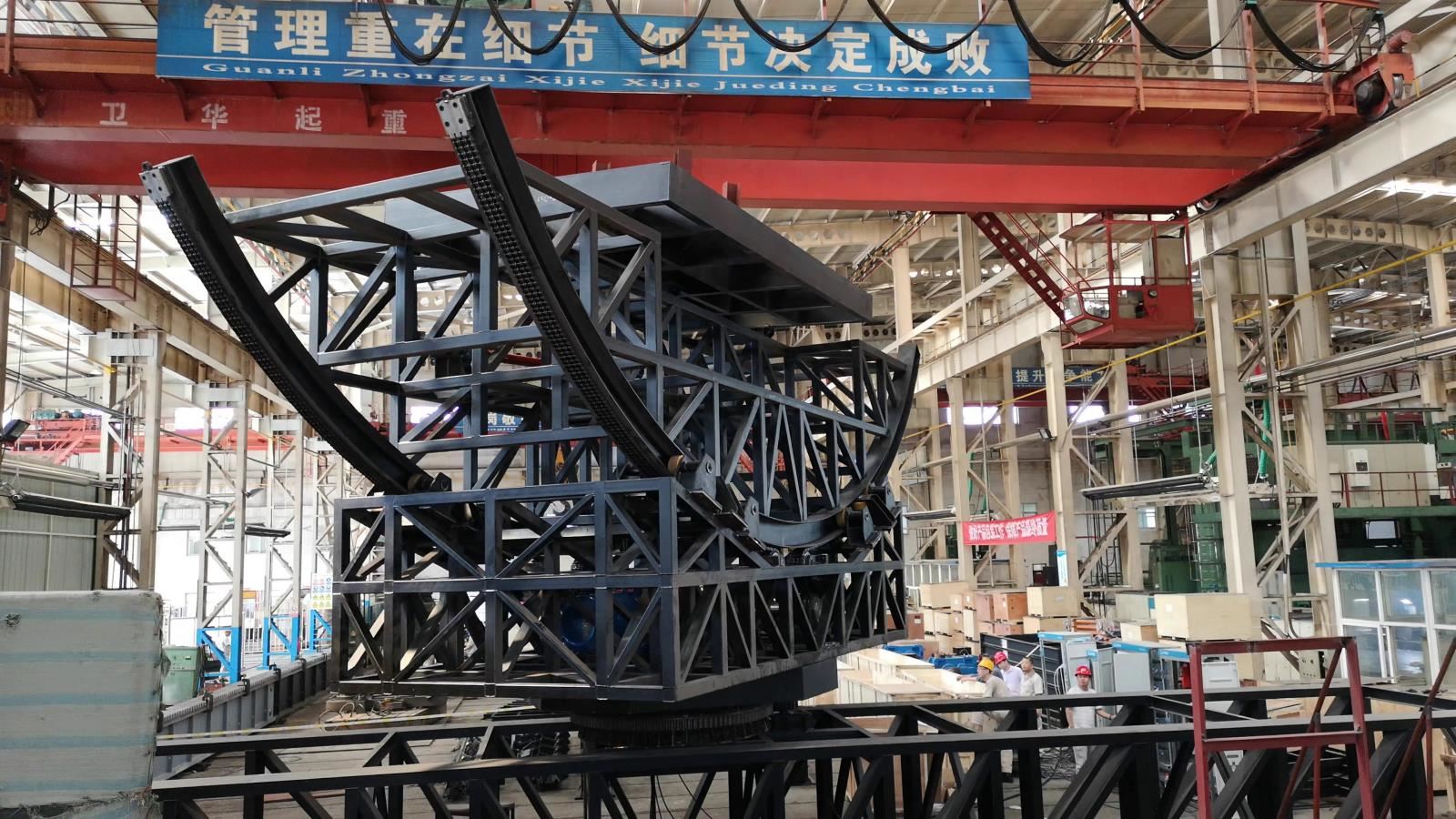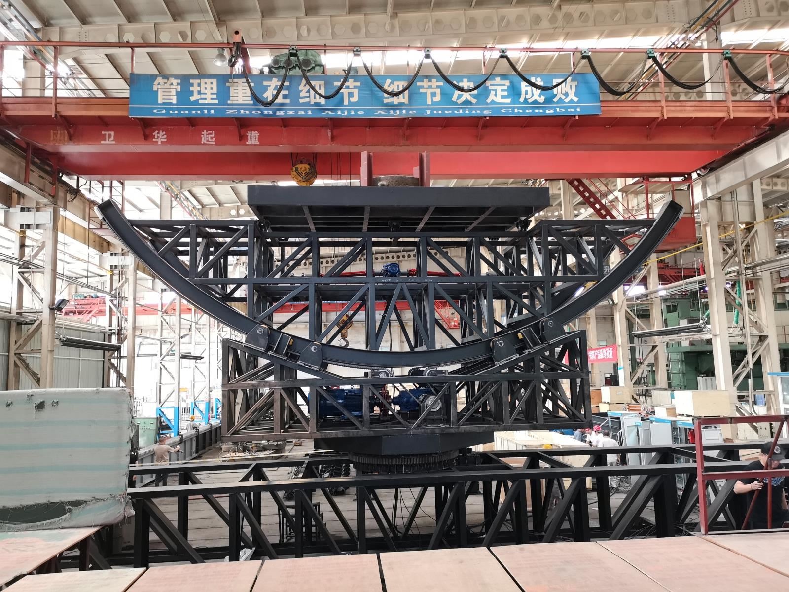(3)海盜船動(dòng)作功能:大船的底部在長度方向?yàn)閳A弧面,船體可沿長度方向前后滑移,呈現(xiàn)在巨浪中前后擺動(dòng)的效果,且前后擺動(dòng)的幅度60°。
