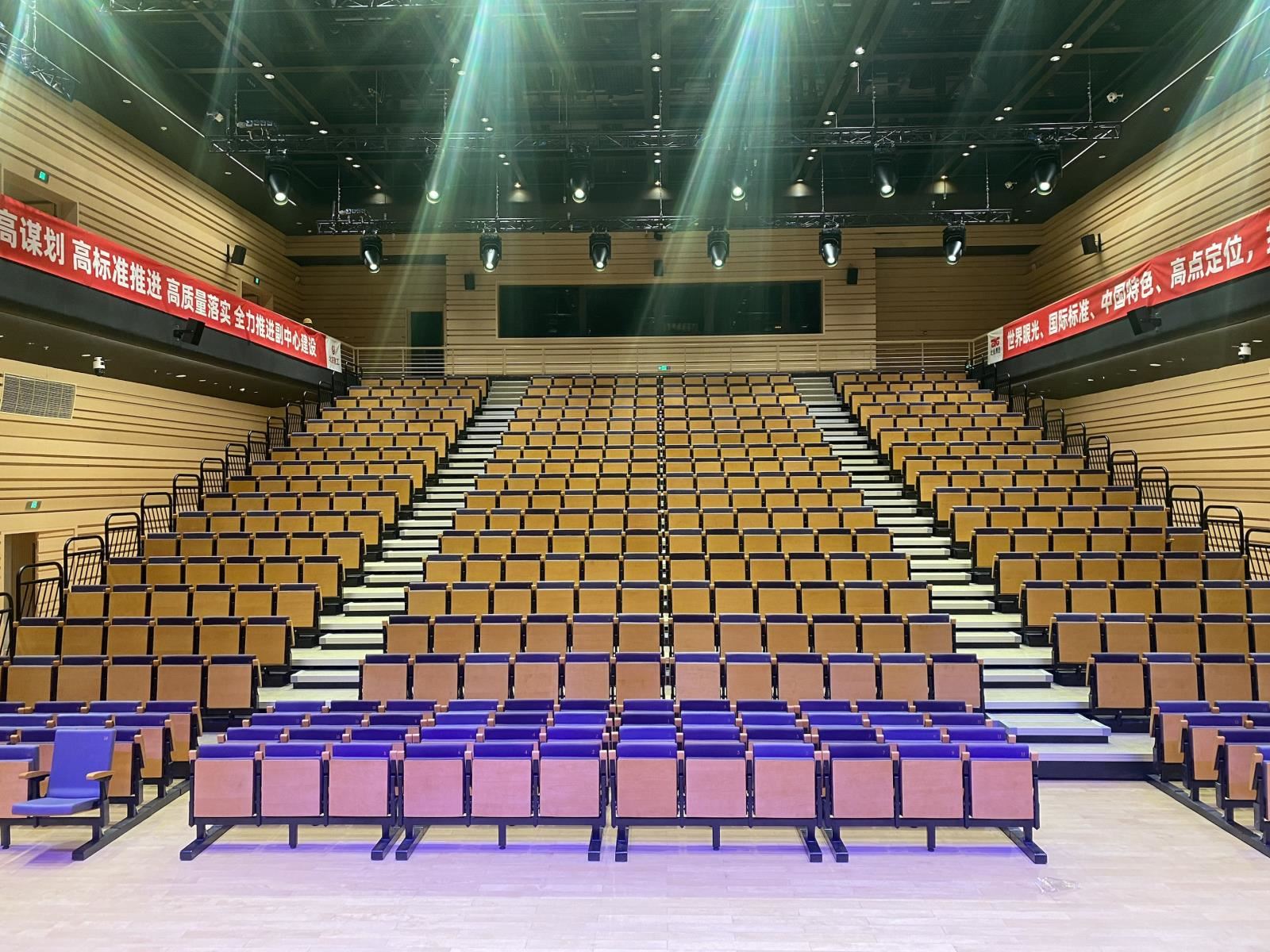 活動(dòng)看臺(tái)可電動(dòng)展開和收攏,當(dāng)排數(shù)較少時(shí),也可以采用人工的方式展開和收攏。